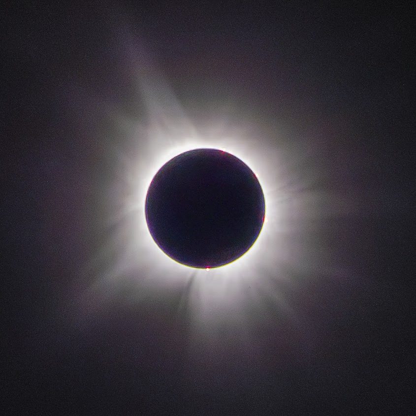 Rick Matthews Since retiring in 2020, I have enjoyed spending more time with grandchildren and more time traveling. The highlights of this year’s travels were two “sky” events. Carolyn and I went to Paris, TX in April to observe the total eclipse. The weather reports were not promising, and indeed we had complete cloud cover until only 20 minutes prior to totality. But then the skies cleared completely, and we had a terrific view of totality. Several solar prominences were visible to the naked eye, one extremely bright red.